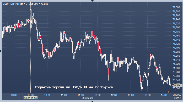 Таким образом, по официальному курсу ЦБ доллар упал к рублю на 45 копеек, а евро упал к рублю на 10 копеек по сравнению с официальным курсом субботы. Объем торгов на Московской бирже к 14:02 мск вторника составил 795,9844 млрд рублей или 11 117,6909 млн долларов. Курс рубля растет, реагируя на внещние индикаторы: рос цен на нефть, акции и прочие рисковые активы, включая ЕМ-валюты. Инвесторы надеются на скорое восстановление мировой экономики по мере ослабления карантина во многих странах.
