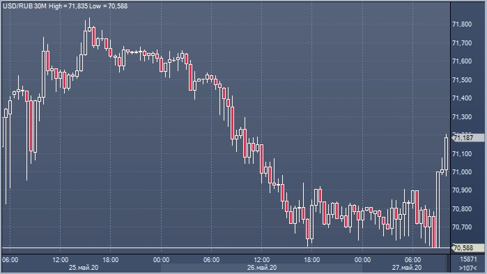 Рубль на азиатских торгах в среду, 27 мая, оставался стабильным и даже на 1 копейку улучшил свой лучший уровень предыдущего дня: USDRUB снизился до 70,59 и достиг нового минимума с 9 марта.