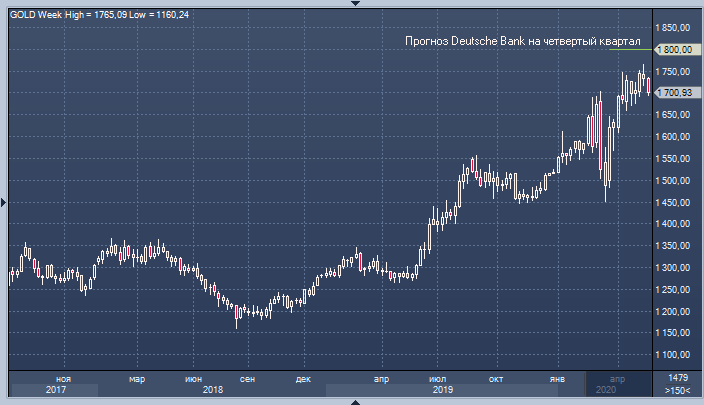 Deutsche Bank прогнозирует рост средней цены золота до $1800 за тройскую унцию в четвертом квартале.