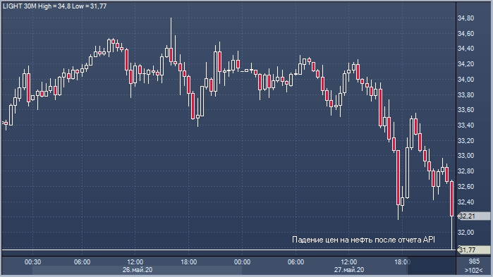 Отчет API составляется на основе информации, которую предприятия предоставляют на добровольной основе. Он традиционно предшествует публикации Министерством энергетики США официальной еженедельной статистики, которая на текущей неделе будет представлена вниманию участников рынка в четверг, 28 мая, в 18:000 мск. (поскольку в понедельник в США праздновался День памяти)