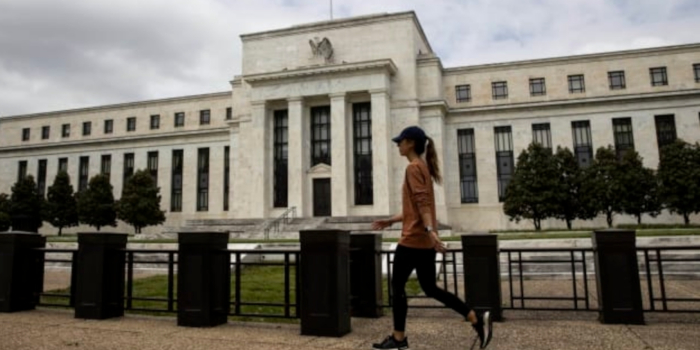 Женщина проходит мимо здания Федеральной резервной системы США в Вашингтоне, округ Колумбия, США, 21 мая 2020 года. Тин Шен | Агентство Синьхуа | Getty Images