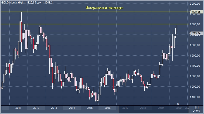 Замедление экономик из-за пандемии коронавируса вполне может поднять котировки золота до 2000 в перспективе ближайшего года, заявил глава ВТБ Капитал Инвестиции Владимир Потапов. Под управлением организации находятся активы на $35,5 млрд. Потапов рекомендовал порядка 5% инвестпортфеля выделить на золото.