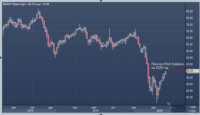 В Fitch Solutions повысили прогноз по нефти брент на 2020 год с $33 до $40 и с $42 до $49 на 2021. Эксперты компании рассчитывают на дальнейшее восстановление средней цены до $55 в 2022 и до $60 в 2023 году.