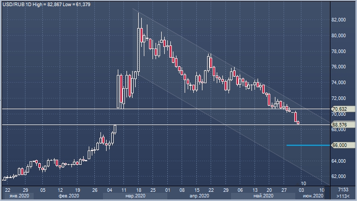 Во вторник USDRUB снизился до 68,57, что является минимальным значением с 6 марта. Ближе к завершению торгов котировки отскочили к 68,75. С учетом этого уровня ожидания UBS подразумевают укрепление российской валюты на 3,75%.