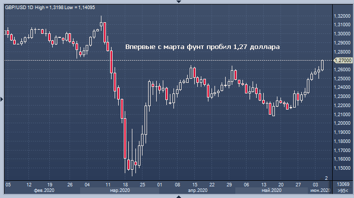 Фунт вырос на 5% по отношению к доллару с тех пор, как в середине мая достиг минимума в 1,2075 долл. США, но ралли сдерживается высокими показателями смертности от коронавируса в Великобритании, рисками, связанными с Brexit, перспективой отрицательных процентных ставок и растущим уровнем долга.