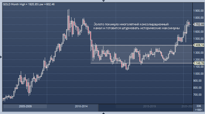 Пока нет никаких признаков того, что мир ставит под сомнение резервный статус доллара, однако очевидно, что он медленно уступает долю рынка другим валютам, отмечает инвестор. ФРС идет на полное финансирование дефицита федерального бюджета США, что создает потенциальные риски для доллара, как главной резервной валюты. Покупка золота со стороны ФРС могла бы компенсировать это, так как аккумуляция золота в резервах исторически воспринимается рынком в качестве ответственной политики в кризисные периоды.