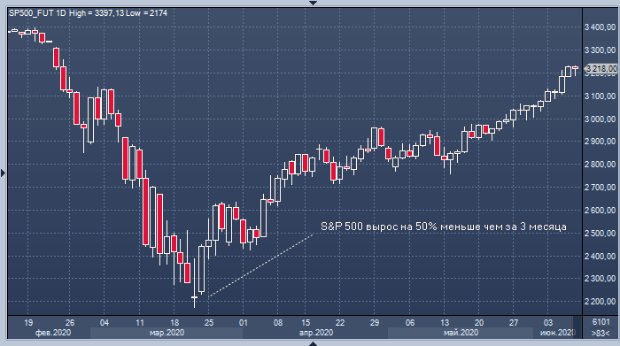 Один коллега недавно сказал мне, что динамика рынка акций зависит от фундаментальных показателей, только если инвесторов эти показатели волнуют. А сейчас это, похоже не так. Если все покупают акции в надежде продать их выше еще большему глупцу, а этим глупцом является центробанк с бесконечной ликвидностью, то цены продолжат расти.