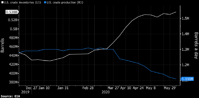Новая сделка по ограничению добычи нефти (ОПЕК+) действует уже почти полтора месяца, однако коммерческие запасы сырой нефти в США на прошлой неделе достигли нового рекордного значения на уровне 538.1 млн баррелей. Мировой спрос на черное золото восстанавливается медленно и неравномерно, что обусловлено разными сроками выхода из карантина в разных регионах мира.