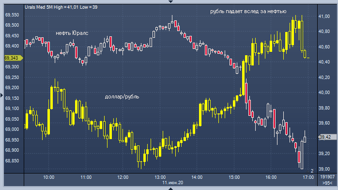 Рубль в понедельник достиг 3-месячного пика 68,04 за доллар, отражая аналогичный максимум нефти после пролонгации на июль текущих высоких уровней сокращения добычи ОПЕК+, а также на фоне рыночного оптимизма по мере снятия карантина в разных странах. Сейчас рубль тестирует уровень 69,50 — также отражая динамику нефти, на этот раз падение. Мировые рынки нашли повод лля коррекции в пессимистичном прогнозе ФРС. Неожиданный рост запасов в США до рекордного уровня 538,1 миллиона баррелей (без учета стратегических запасов) за счет закачки в хранилища больших объемов нефти, купленной на пике падения цен в марте-апреле также сыграл свою роль в продажа нефти и рубля.