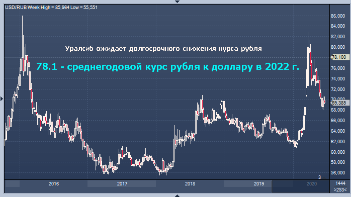 - В этом и следующем годах рубль будет относительно стабильным - в среднем за год 71/$ в 2020г и 73/$ в 2021 году.