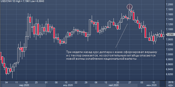 В тот день курс был 7.06, но меняла был непреклонен. В какой-то момент в мае курс доллара к юаню вырастал в Гонконге до 7.19, и дилер был уверен в дальнейшем ослаблении китайской валюты.