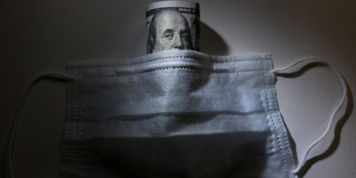 Банкнота доллара США изображена под защитной маской, которая широко используется в качестве профилактической меры против коронавируса (COVID-19), на этой иллюстрации, сделанной 17 марта 2020 года. REUTERS / Alexey Pavlishak
