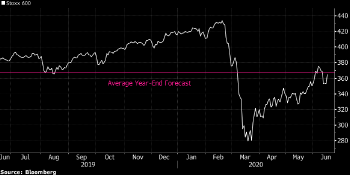 Участники опроса полагают, что благодаря масштабной программе финансовой помощи рынок акций Европы вряд ли повторно протестирует минимумы марта, но при этом и свежих максимумов не достигнет. Следует отметить, что прогнозы стратегов ведущих банков показывают очень большой разброс, и агентство Bloomberg объясняет это неопределенностью влияния пандемии коронавируса на прибыль компаний и экономику в целом.