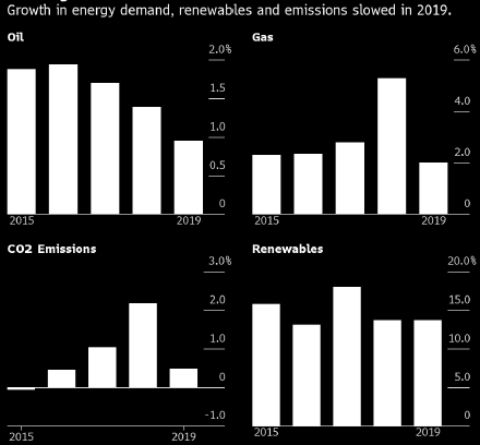 Выбросы углерода, связанные с использованием энергоносителей, выросли в 2019 году всего на 0.5%, однако глава BP предостерегает от излишнего оптимизма, так как данное снижение произошло после резкого роста выбросов на 2.1% годом ранее.