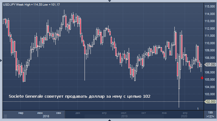 Societe Generale рекомендует покупать иену с целью 102 за доллар, сообщается в отчете в среду. «Не захватывающе, просто сильно», - писал Кит Джакс (Kit Juckes), главный глобальный валютный стратег банка о иене.
