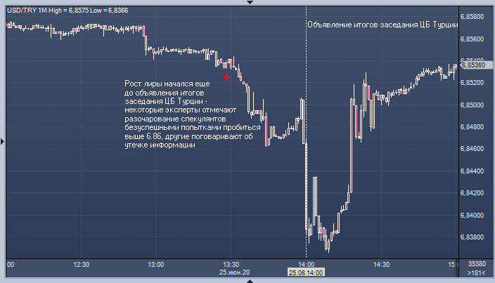 Решение является хорошим сигналом, учитывая ухудшение инфляционной картины в стране, на которую ЦБ и сослался в сопроводительном заявлении. Лира отреагировала на новости рывком выше, однако к настоящему времени она утратила все занятые позиции — участники рынка указывают на то, что она начала активно расти незадолго перед официальным объявлением итогов заседания ЦБ Турции, и связывают резкий разворот с фиксацией прибыли спекулянтами.