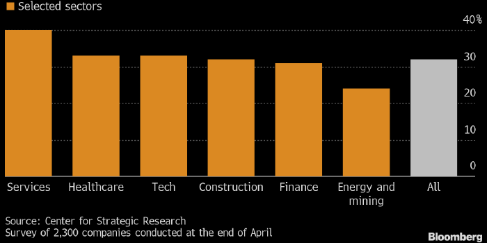 Агентство Bloomberg обратилось в Минэкономразвития РФ с вопросом о том, планирует ли правительство страны принимать меры для предотвращения большого количества корпоративных банкротств, но ответа пока не получило.