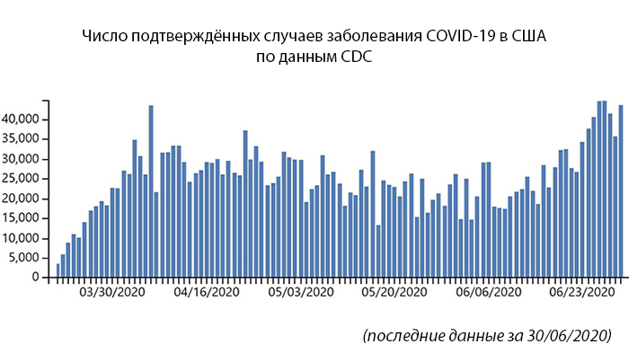 В последние дни внимание всего мира привлекли новости из США, где темпы распространения коронавируса достигли максимального уровня с начала пандемии. Обстановка выглядит даже хуже, чем в апреле, однако реакция валютного рынка оказалась весьма спокойной — массового исхода инвесторов в доллар не наблюдается.