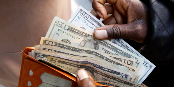 Мужчина показывает банкноты в долларах США после снятия наличных денег в банке в Хараре, Зимбабве, 9 июля 2019 года. РЕЙТЕР / Филимон Булавайо