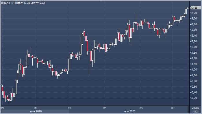 Цены на нефть утром в понедельник, 6 июля, демонстрируют разнонаправленную динамику. Котировки WTI на уровне закрытия в предыдущий торговый день, составляют 40,65 за баррель. При этом североморская нефть Brent растет на 1,14% до 43,30 за баррель.