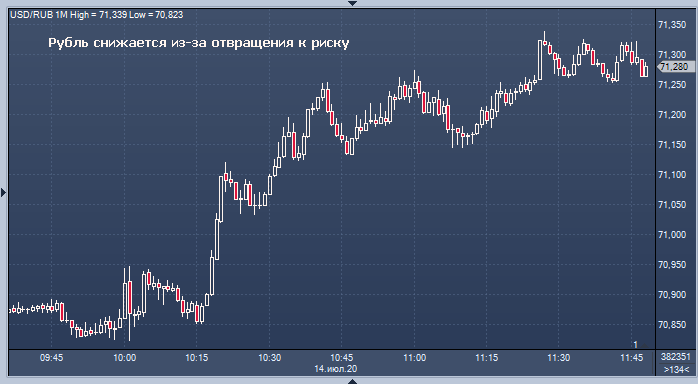 К 11:40 мск пара доллар/рубль расчетами “завтра” была на уровне 71,26, и рубль теряет треть процента. В начале торгов рубль дорожал до 70,83. В паре с евро рубль теряет также треть до 80,84.