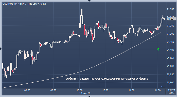 Рубль упал утром в четверг, поскольку сегодня маятник качнулся в сторону ухода инвесторов от риска. Осторожность превалирует на фоне обострившихся отношений между Вашингтоном и Пекином, а также после неоднозначной китайской статистики, отражающей сложности в восстановлении после коронавируса, сообщает Reuters.