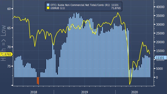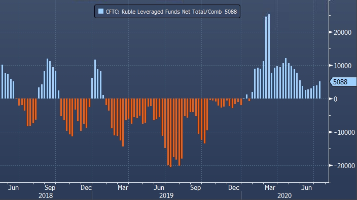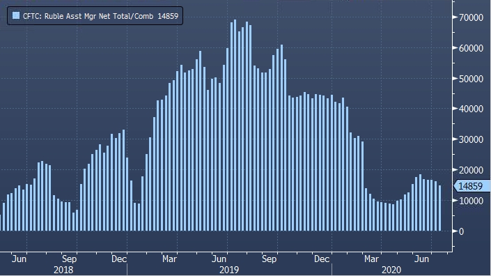 Если оценить статистику CFTC по рублю более подробно, то можно отметить, что сальдированная длинная позиция тех участников рынка, которые торгуют с кредитным плечом (leveraged funds), увеличилась на 1 217 до 5 088 контрактов на отчетной неделе. Показатель демонстрирует рост в базисе неделя к неделе уже пять периодов подряд