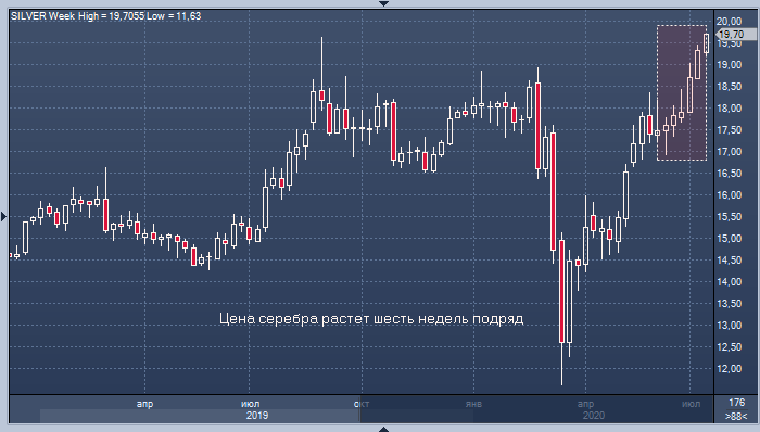 Цены на золото и серебро закрыли ростом уже шесть недель подряд на фоне ожиданий дополнительного стимулирования со стороны мировых центробанков. Страны ЕС могут вскоре согласовать масштабный пакет экономической помощи, а сегодня в Белом доме начнутся переговоры о новой стимулирующей программе.
