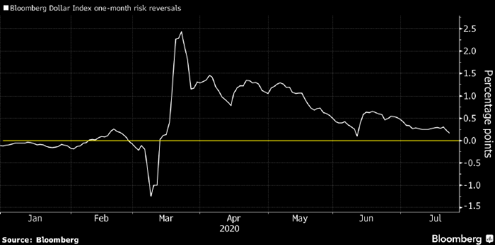Инвесторы также сокращают длинные позиции в кол-опционах на доллар против аусси и иены, пишет Bloomberg со ссылкой на информированного европейского трейдера.