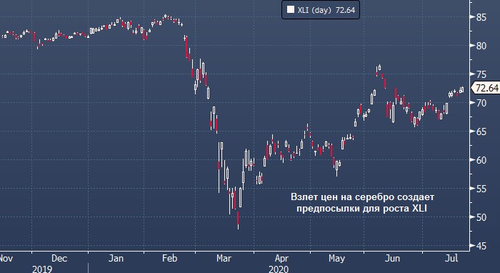 Эти соображения побудили эксперта рекомендовать покупку августовских колл-опционов на XLI (ProFinance.ru: ETF, воспроизводящий динамику индекса Industrial Select Sector Index, в который входят компаний промышленной сферы США).