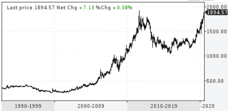 Золото готово покорить абсолютные максимумы Золото нацеливается на отметку в $1900 за унцию, поскольку увеличивается приток капитала в защитные активы на фоне обострения отношений США и Китая Золото возобновило свой марш к 1900 долларам в пятницу, поскольку эскалация дипломатического конфликта между США и Китаем стала новым толчком в ралли металла до девятилетнего пика, начавшегося из-за опасений по поводу экономический последствий пандемии коронавируса.