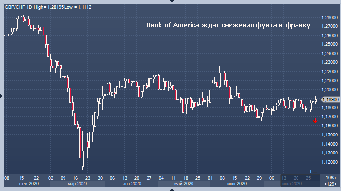 Фунт должен упасть против безопасного швейцарского франка до конца 2020 года из-за неопределенности, порожденной разработкой торгового соглашения после Brexit, из-за негативного влияния пандемии коронавируса на британскую экономику и действий Банка Англии, сообщает Bank of America.