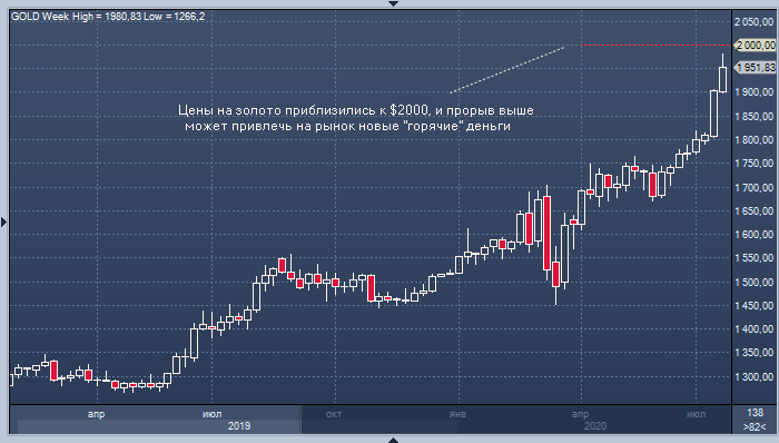 «Если цены на золото поднимутся выше $2000 за унцию, то на рынок, несомненно, придут новые горячие деньги, и некоторые инвесторы перейдут из акций в золото».