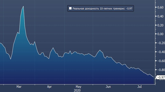 Реальная доходность 10-летних трежерис вчера опустилась до -0.98% после голубиного заявления ФРС накануне, и месячное закрытие в этой области станет рекордно низким за всю историю, пишут эксперты UBS.