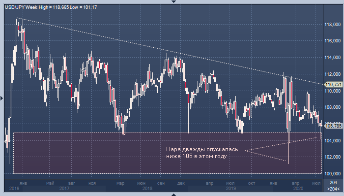Курс доллара к иене вряд ли скоро опустится ниже 100, полагает большинство рыночных экспертов, опрошенных агентством Bloomberg. Ближайшая ключевая поддержка расположена около 105, и этот уровень пробивался в этом году уже дважды (в начале марта и в прошлую пятницу), но каждый раз паре удавалось удержаться выше.