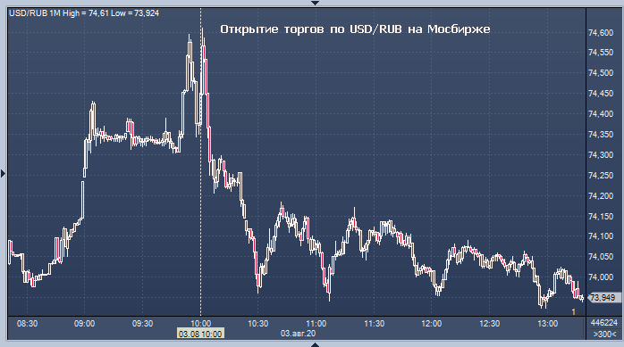 Таким образом, по официальному курсу ЦБ доллар вырос к рублю на 73 копейки, а евро упал рублю на 6 копеек по сравнению с официальным курсом субботы. Объем торгов на Московской бирже к 13:14 мск понедельника составил 917,6230 млрд рублей или 12 497,2317 млн долларов. Рубль сегодня обновил минимум с начала мая к доллару и начал корректироваться вверх, глядя на американские акции.