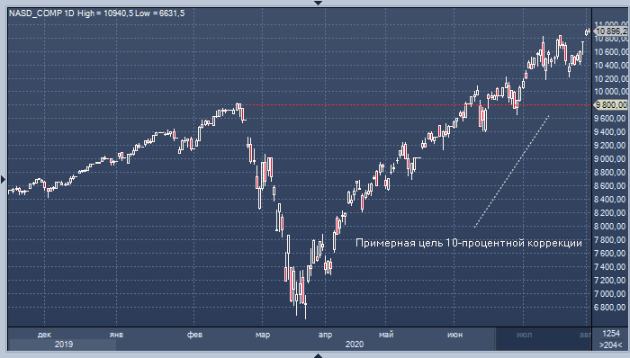 Индекс технологических компаний Nasdaq Composite вырос с минимумов марта примерно на 60% и с начала года закрыл на рекордных уровнях уже 29 торговых сессий. Лидерами роста оказались крупнейшие по капитализации компании, вроде Microsoft, Tesla, Facebook, Apple, Amazon, Netflix и Alphabet (Google).