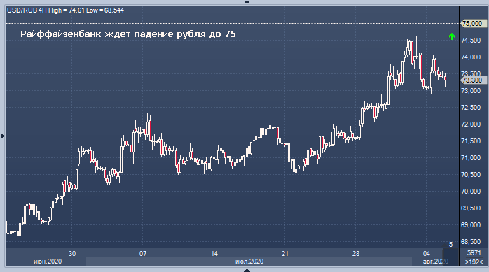 При сохранении нынешних цен на нефть и газ и объемов экспорта рубль ждет дальнейшее ослабление в район 75 за доллар, считают в банке. Также могут реализоваться «хвостовые» риски в виде падения потребления углеводородов из-за второй волны коронавируса в мире. По оценке, выпадающие нефтегазовые доходы в августе сократятся до 15 миллиардов рублей - до такого же уровня должны сократиться и FX-продажи Минфина.