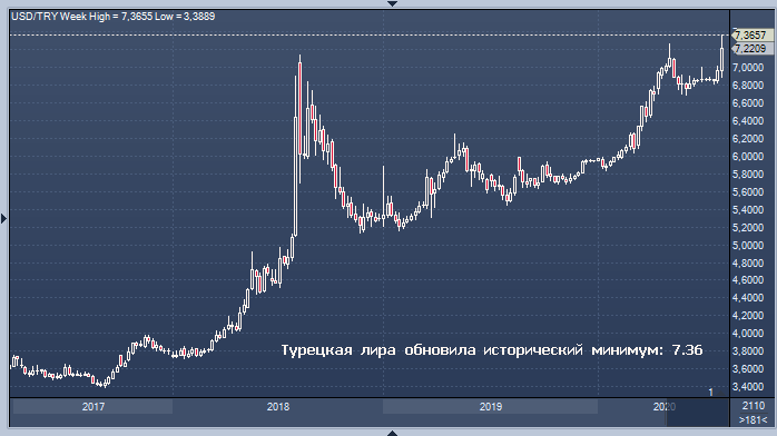 Лира упала до нового рекордно низкого уровня в пятницу, хотя центральный банк за последний год потратил миллиарды на ее поддержку. Ранее на этой неделе стоимость заимствования денег в лирах подскочила до уровней свыше 1000% — последний признак дисфункции на денежных рынках Турции.