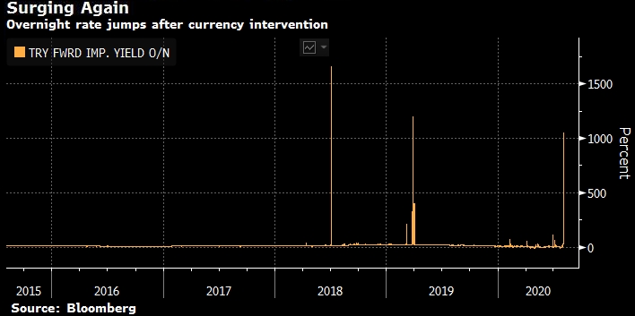 Во вторник стоимость заимствования лир овернайт резко подскочила до более 1000% по мере испарения ликвидности, не оставив многим инвесторам другого выбора, кроме как сбросить турецкие активы. Давление было настолько серьезным, что несколько глобальных банков не смогли выполнить своих обязательств, выраженных в лирах.