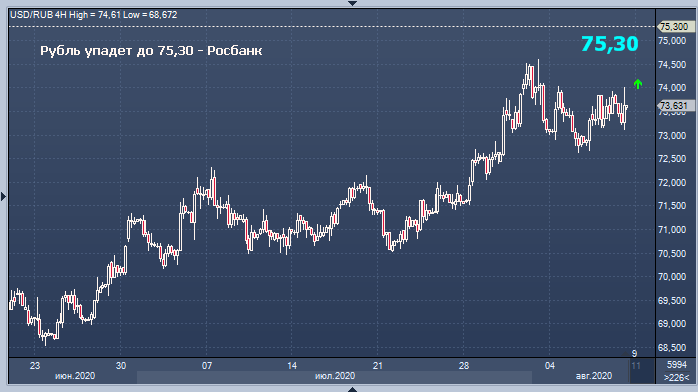 «Как следствие, даже движение на обесценение обещает носить умеренный характер. Ближайшей значимой целью может стать локальный уровень сопротивления на отметке 75,30», - сообщили в Росбанке.