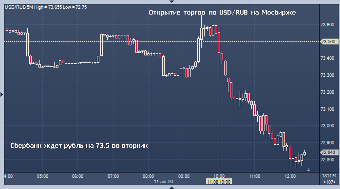 Аналитики Sberbank Investment Research, аналитического подразделения Sberbank CIB, прогнозируют, что курс рубля во вторник останется возле отметки 73,5 руб. за доллар, хотя и ненадолго, поскольку сохраняются геополитические риски. Так, в случае дальнейшего обострения отношений США с Китаем или же резкого ослабления турецкой лиры рубль на этой неделе может оказаться на уровне 75 за доллар.