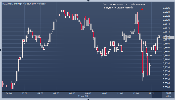 Новозеландский доллар негативно воспринял новости о том, что после 102 дней затишья в Новой Зеландии было зафиксировано четыре случая заражения коронавирусом. Все четыре заболевших являются членами одной семьи, однако органы здравоохранения беспокоит отсутствие ясности в вопросе об источнике заражения.