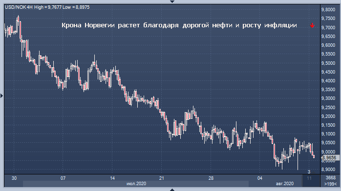 Курс норвежской кроны также повысили данные по инфляции, опубликованные в понедельник, показавшие, что базовая инфляция в июле выросла до 3,5% в годовом исчислении, что является самым высоким показателем с июля 2016 года. Данные значительно превзошли ожидания. Хотя всплеск инфляции может быть временным, поскольку он частично был вызван резким обесцениванием кроны ранее, данные поддерживают позицию Банка Норвегии как одного из наименее «голубиных» центральных банков G10, при этом дальнейшее смягчение ДКП считается менее вероятным в будущем, говорит валютный аналитик Ли Хардман. Он добавляет, что норвежская крона и шведская крона по-прежнему будут вести себя лучше рынка.
