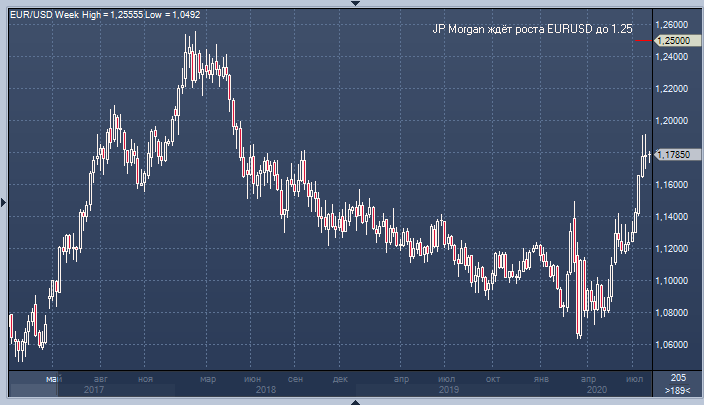 В банке признают, что восходящий импульс несколько ослаб, однако связывают это с ростом интереса к фиксации прибыли после ралли, и напоминают, что размер чистой длинной позиции спекулянтов на CME, по данным CFTC на 4 августа, составил рекордные 185 135 контрактов. Такой перекос может послужить сдерживающим фактором в краткосрочной перспективе, но в JPMorgan отмечают, что EURUSD продолжает пользоваться спросом на спадах, и советуют рассматривать попытки коррекции ниже 1.17 как возможность для покупки.
