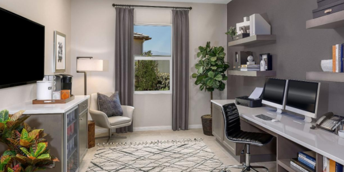«Мы предлагаем различные варианты персонализации домашнего офисного пространства», - отмечает глава KB Homes Джеффри Мецгер. - «Например, домовладельцы могут улучшить тепло- и звукоизоляцию, выбрать тип освещения, установить потолочные вентиляторы, специальные стеклопакеты и даже поставить мини-бар».