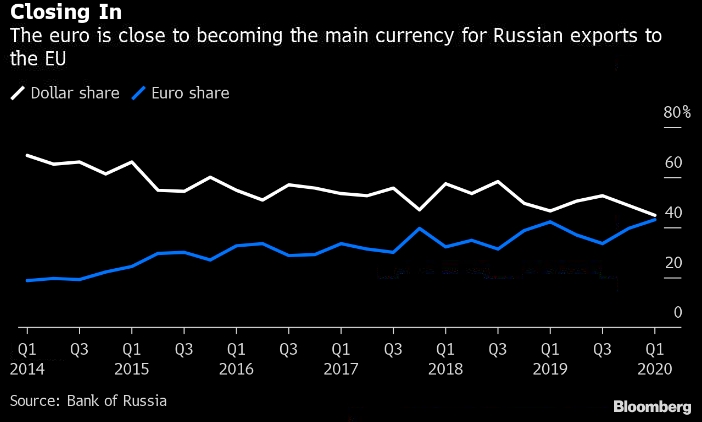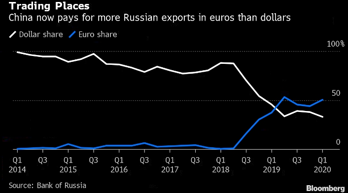 В настоящее время российский экспорт в Китай приносит выручку больше в евро, чем в долларах, что стало следствием наказа президента Владимир Путина снижать зависимость от американской валюты.