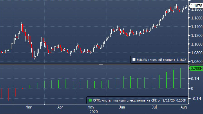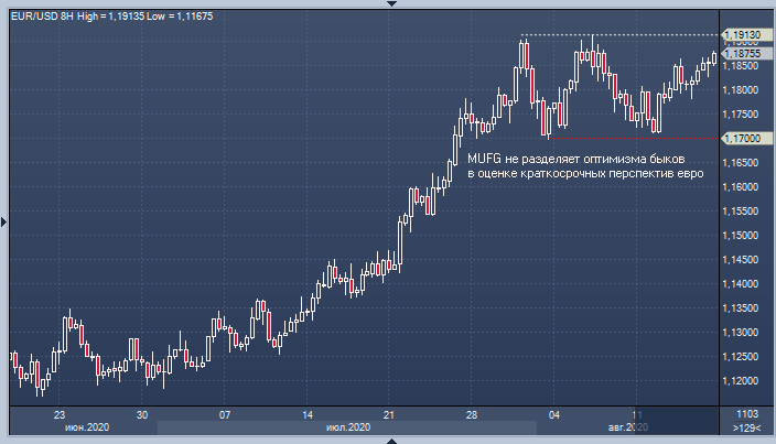В Mitsubishi UFG с осторожностью говорят о перспективах развития восходящего движения EURUSD. В банке признают, что быкам удалось удержать пару от падения ниже 1.17 и, таким образом, сохранить контроль над ситуацией, а с прорывом максимума 13 августа от спекулянтов закономерно было бы ожидать штурма сопротивления в районе 1.19. Но как раз размер нетто-лонга спекулянтов, который, по данным CFTC, на CME достиг рекордного значения в 200 тысяч контрактов, вызывает беспокойство. Не то, чтобы он стал препятствием для прорыва максимумов этого года, однако он ставит под сомнение способность евро к возобновлению устойчивого ралли в краткосрочной перспективе.