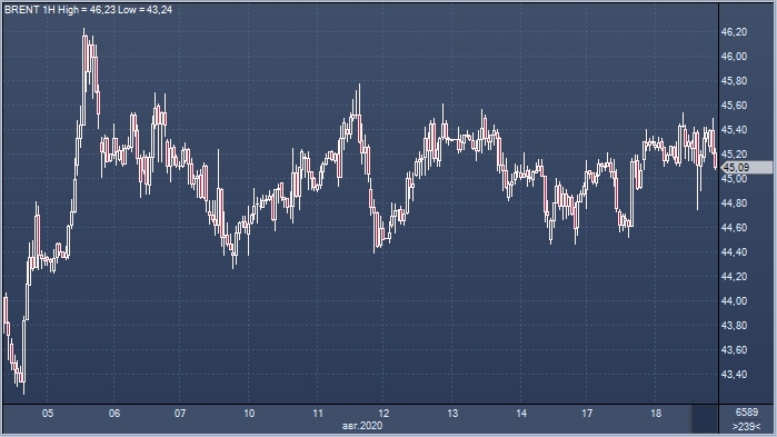 Цены на нефть Brent во вторник в очередной раз протестировали на прочность $45,50 за баррель. За последние 11 дней такие попытки предпринимались 7 раз, но закрыться выше указанного уровня пока не удалось. В среду будет опубликован еженедельный отчет Минэнерго США по изменению запасов нефти и нефтепродуктов. Консенсус-прогноз экспертов энергетического рынка подразумевает, что за неделю до 14 августа запасы сырой нефти в США снизятся на 3 млн барр. после падения на 4,5 млн барр. на прошлой неделе. При этом запасы бензина, как ожидается, сократятся на 1 млн барр., а запасы дистиллятов на 1,1 млн барр.
