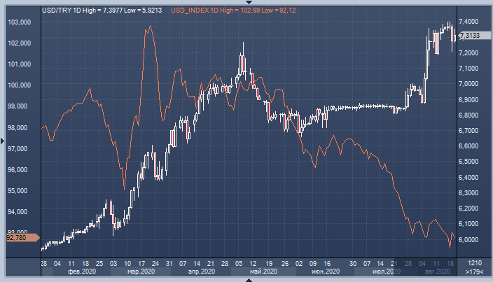 Центральный банк Турции сегодня, как и ожидалось, сохранил ставку репо на уровне 8.25% и, хотя это решение соответствовало ожиданиям большинства участников рынка, инвесторы восприняли новости негативно, чему также способствовало обещание регулятора продолжить меры по контролю за ликвидностью. В TD Securities отмечают, что нежелание центробанка повышать ставки в ответ на обвал национальной валюты и альтернативные меры по сдерживанию давления на неё не сулят лире ничего хорошего.